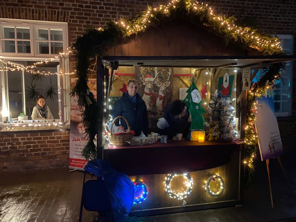 Um den Besuch für alle Gäste noch schöner zu machen hat der Förderverein gemeinsam mit Kindern, Jugendlichen, Familien und Mitarbeiterinnen des Waisenstift Varel den Innenhof zum Weihnachtsmarkt umgestaltet.